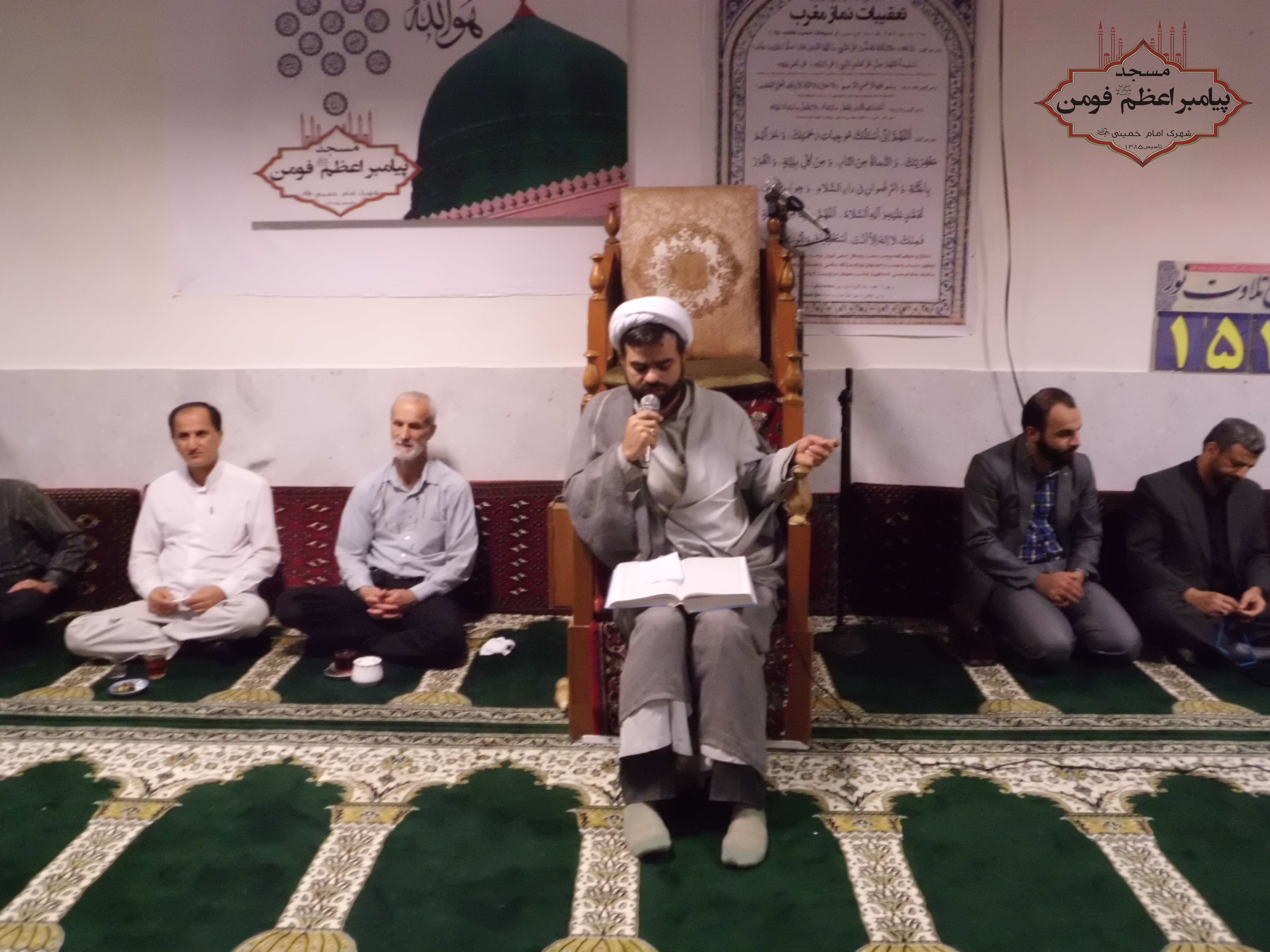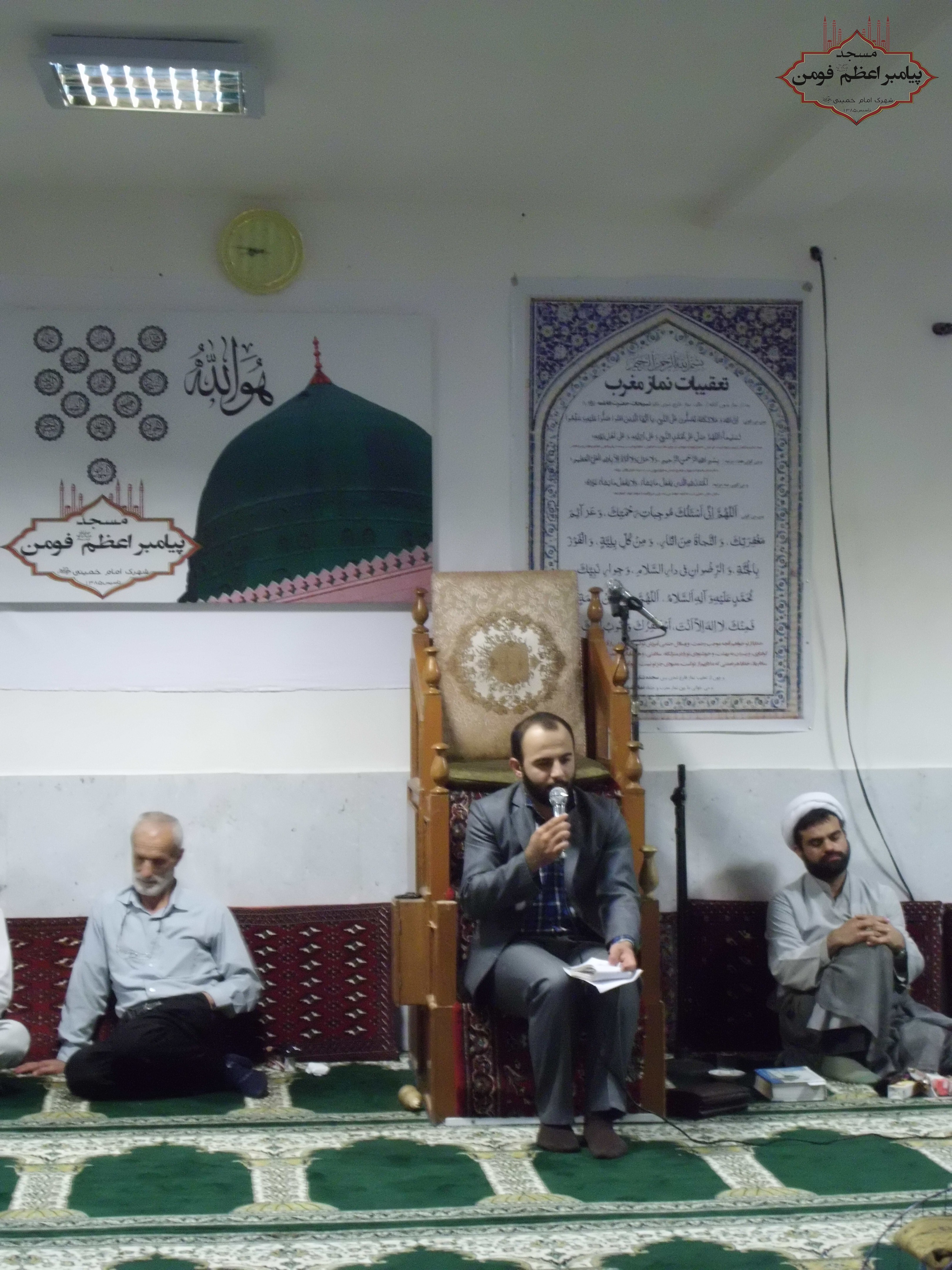 در این مراسم حجت الاسلام والمسلمین بشارتی، امام جماعت محترم مسجد، به ایراد سخن پرداختند. ایشان در ابتدا با اشاره به روز دحو الارض و فضیل آن، بیان داشتند که طبق روایات روزه گرفتن در این روز برابر است با هفتاد سال روزه گرفتن.