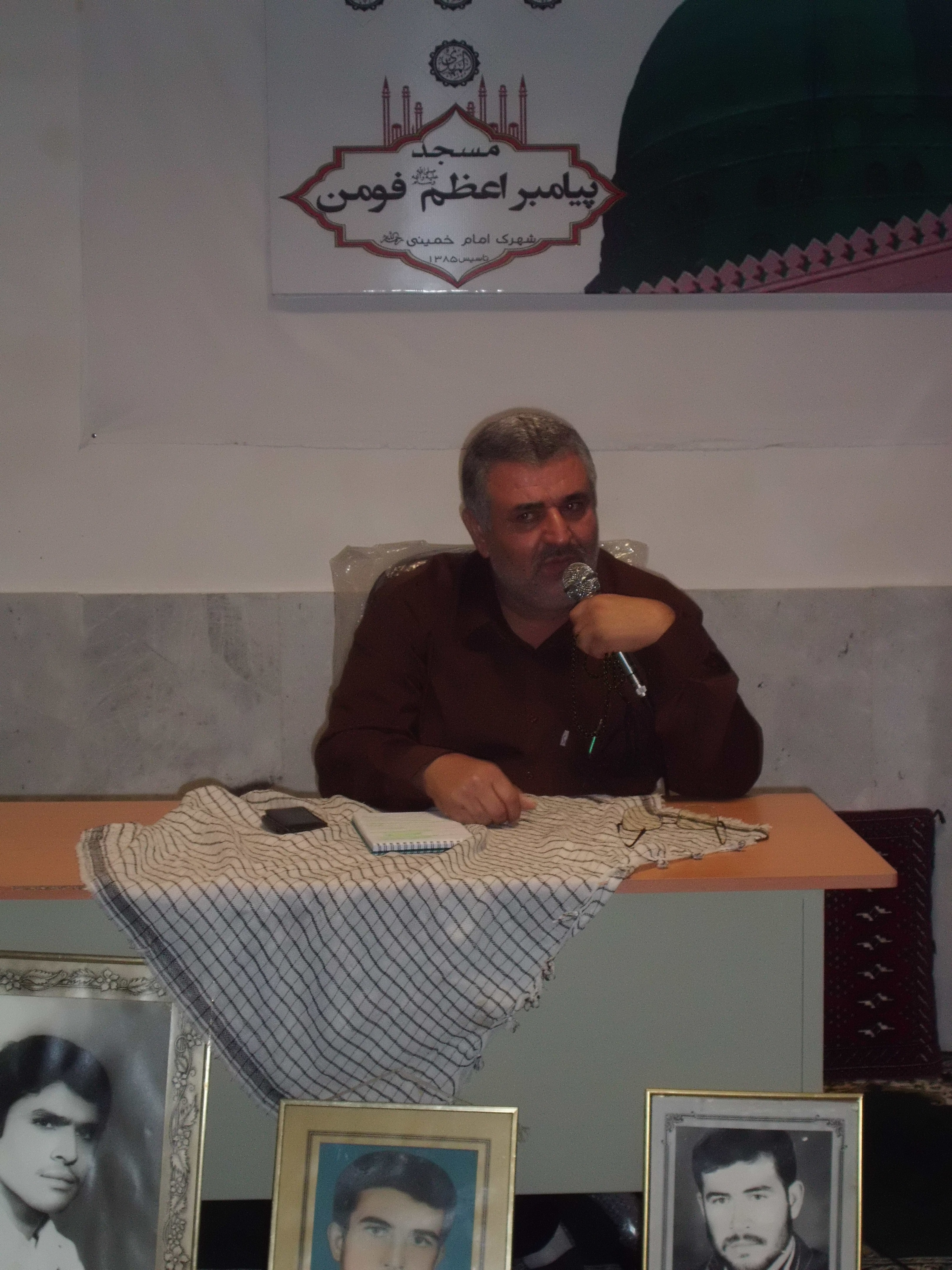 شب خاطره گویی هفته دفاع مقدس با حضور و خاطره گویی رزمنده آزاده نورالدین نعمتی، عضو شورای شهر فومن، و رزمنده بسیجی محسن زهری برگزار شد. در ابتدای مراسم زندگینامه شهید خلیل حیدری قرائت شد و در آخر اسلایدشو تصاویر شهدای شهرک امام خمینی (ره) پخش گردید.