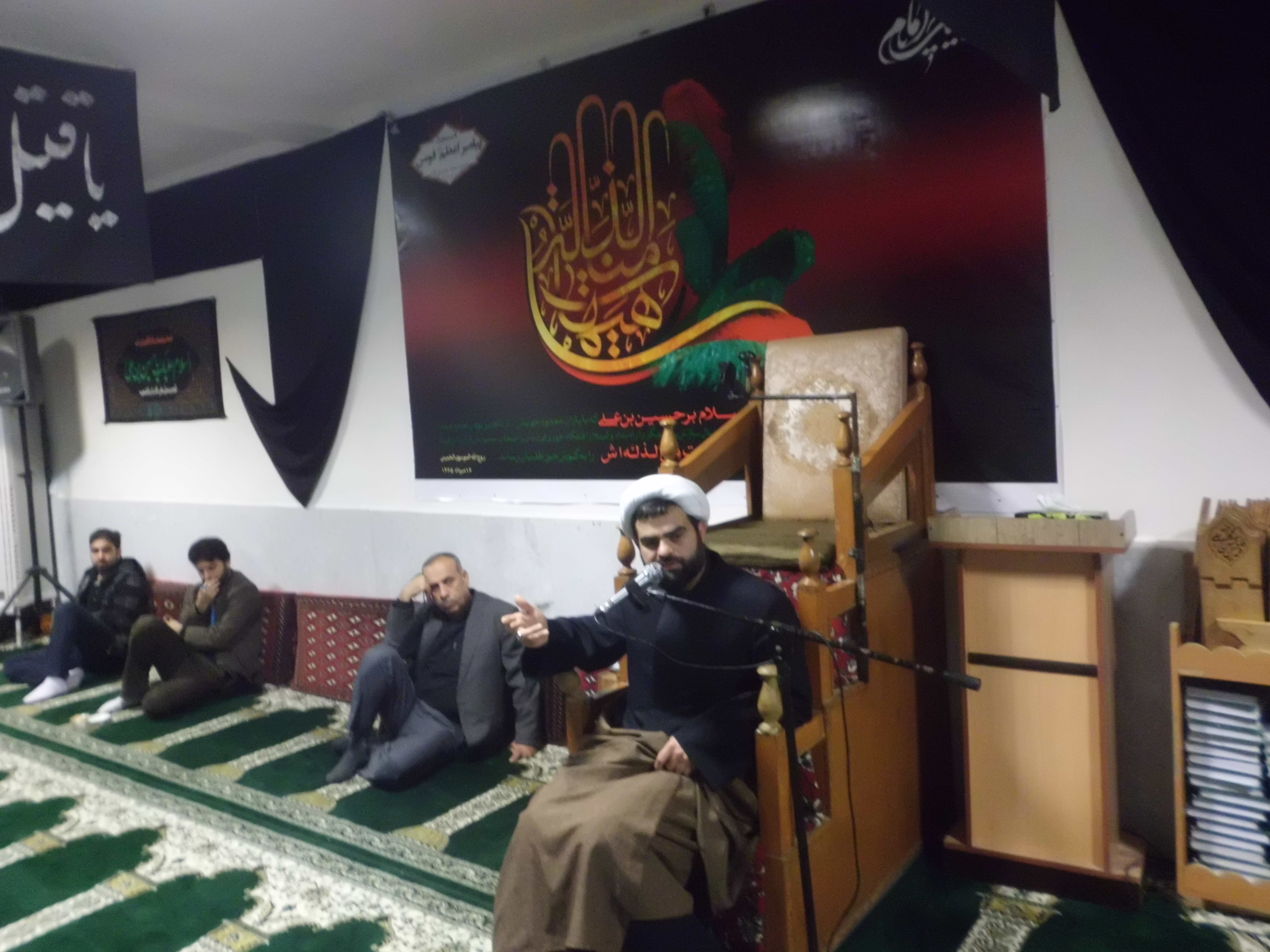 شب چهارم مراسم عزاداری بعد از نماز مغرب و عشاء و قرائت قرآن با سخنرانی حجت الاسلام محمد بشارتی پیرامون اهمیت علم در دیدگاه اسلام و همچنین اسلام برخلاف سایر ادیان بر روی تعلیم و تربیت دست گذاشته است. زیارت عاشورا توسط برادران میثم محمدی پور و سید الیاس صفوی قرائت شد. در ادامه برادر رامین حقیقت طلب به نوحه سرایی و مداحی و پس از آن برادر صفری به مدیحه سرائی اهل بیت علیهم السلام پرداختند. در پایان حجت الاسلام والمسلمین صفوی درباره صدر اسلام و کسانی که در مسیر اسلام بوده اند و کم کم از اسلام فاصله گرفتند پرداختند.