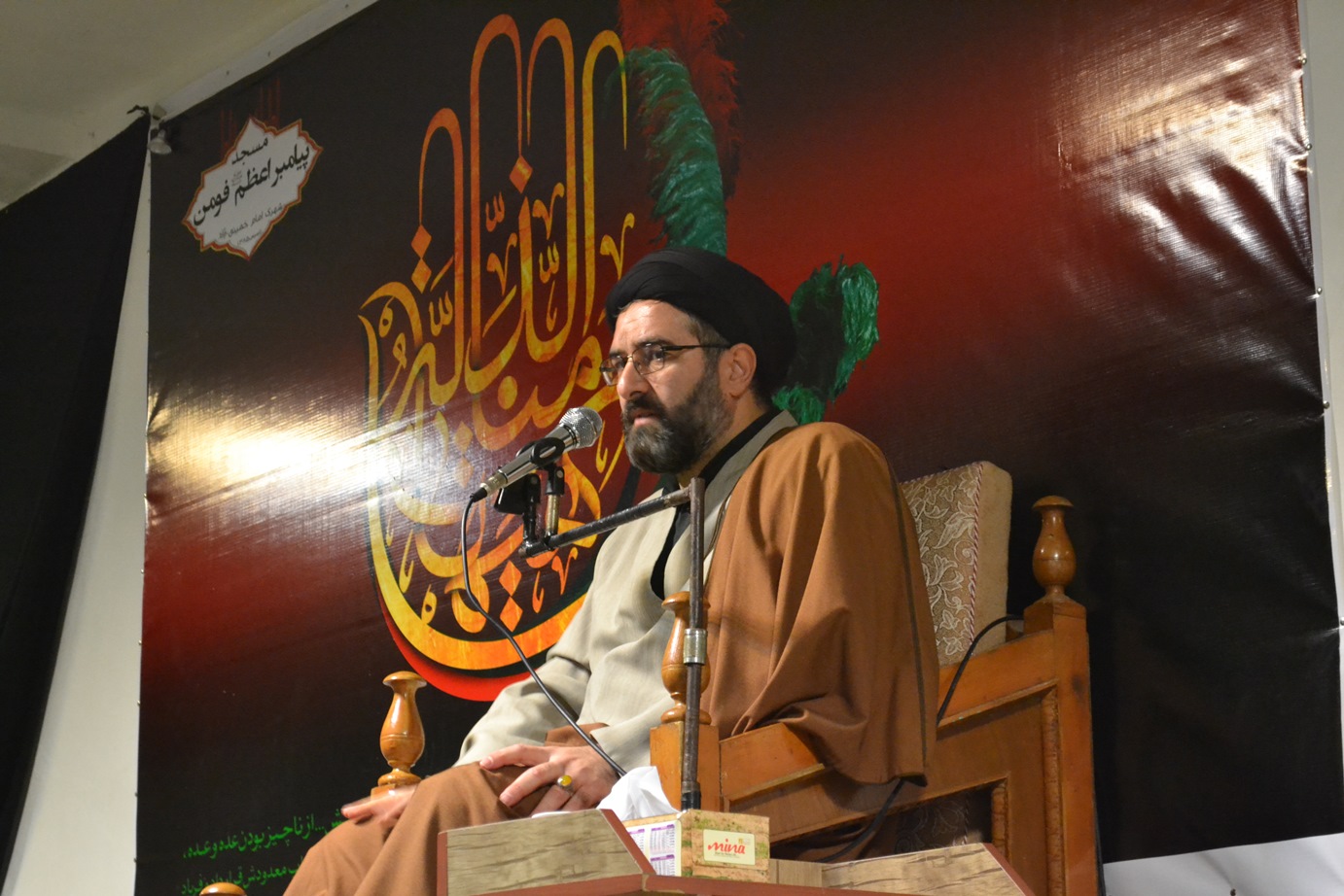 امام جماعت محترم مسجد پیامبر اعظم صلی الله علیه و آله فومن در سخنان شب دهم محرم خود با اشاره به امتحان الهی گفتند خدا بنده ها را ابتدا با نعمت امتحان می کند و در مرحله ی بالاتر با بلا. به نسبت امتحانی که انسان از یر می گذراند بلا نیز سخت تر است. بلای کربلا نیز امتحان سختی برای پیامبر اعظم صلی الله علیه بود که باعث شد او به بالاترین مقام بشری دست یابد. وی همچنین نتیجه سربلندی در امتحان را رحمت الهی دانست که همه ی ما می توانیم از آن استفاده کنیم به شرطی که با امام سنخیت داشته باشیم و بدانیم که قیام امام حسین برای چه بود. در ادامه مطالبی پیرامون امر به معروف و نهی از منکر و تولی و تبری و اهمیت اجرا و نمود عملی آن در زندگی مطرح شد. زیارت عاشورای امشب توسط برادران صفوی و پورهمدم قرائت شد. در ادامه نیز مداحان اهل بیت رامین حقیقت طلب و صفری به ذکر مصیبت و مداحی پرداختند. حجت الاسلام صفوی نیز در این شب با اشاره به دسته بندی مردم به عوام و خواص گفتند شمر لعنت الله علیه در جواب چرایی اعمالش در کربلا می گفت من وابسته به یک جریان بودم و چون سران این جریان تصمیمی گرفته بودن ما هم آن را اجرا کردیم. ایشان به این نکته اشاره کردند که خدا انسان را آزاد آفریده و به جز اطاعت از خدا و پیامبر و اولی الامر یا ائمه که از سوی پیامبر صلی الله علیه و آله و ولی فقیه و مراجع که از طرف ائمه به ما معرفی شدند نمی توانیم و نباید از کسی تبعیت کنیم. عوام افرادی هستند که هر جا بیرقی به پا شد می روند و سینه می زنند. ایشان اضافه کردند که خدا هیچ کس را بدون نذیر یا هشدار دهنده رها نمی کند. در آخرت از برخی می پرسند چرا گناه کردید و از آنجا که می دانستند گناه چیست و مرتکب شدند جوابی ندارند ولی عده ای هستند که می گویند نمی دانستیم و به آنها گفته می شود که شما عقل داشتید، پیامبران فرستاده شدند، آگاهان در جامعه بودند پس دلیلی برای ندانستن وجود نداشت. در ادامه حجت الاسلام سید محمدحسین صفوی به قضیه سیزده آبان اشاره کرد و این حقیقت که امام خمینی رحمه الله علیه بدون وابستگی به اردوگاه شرق یا غرب و برخلاف قواعد سیاسی آن زمان قیام کرد. با مقایسه زمان قبل از انقلاب و بعد از آن، ایشان تاکید کردند که هرگونه تکامل، عزت، پیشرفت و استقلالی با خود سختی هایی دارد که پس از انقلاب مشکلات ما از این جنس است و دشمنان داخلی و خارجی درصدد توطئه اند و ما را رها نکرده اند.