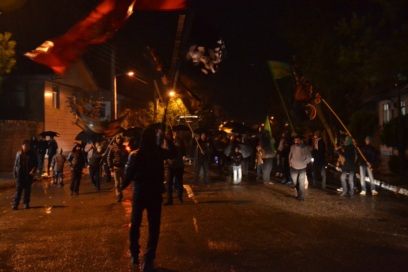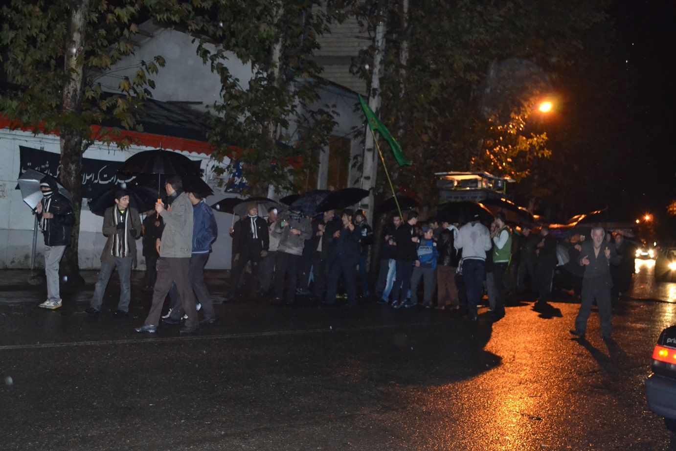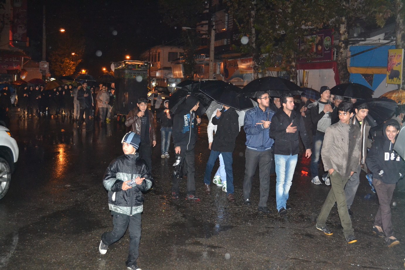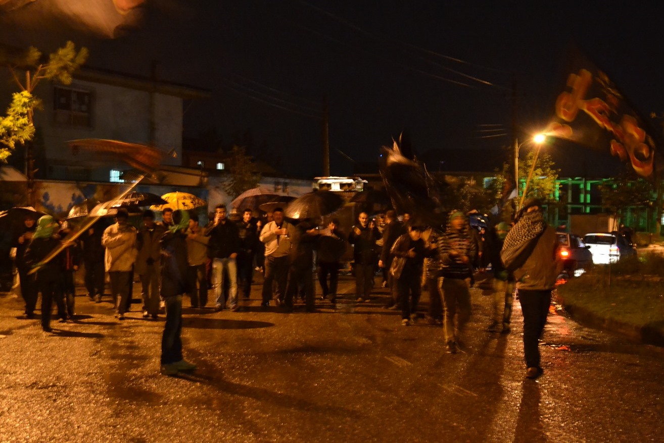 پس از پایان مراسم سخنرانی، مداحی و سینه زنی در مسجد پیامبر اعظم صلی الله علیه و آله شهرک امام خمینی شهرستان فومن، نمازگزاران و عزاداران حسینی علی رغم هوای سرد و بارانی شب شام غریبان محرم 1436 به صورت دسته جمعی به سمت مرکز شهر فومن حرکت کردند و با اهل بیت پیامبر اعظم علیهما السلام همدردی کردند.
