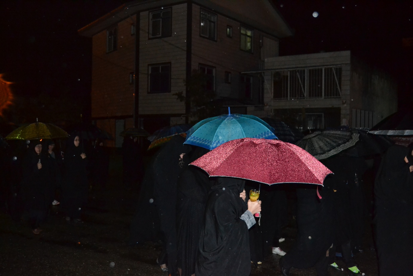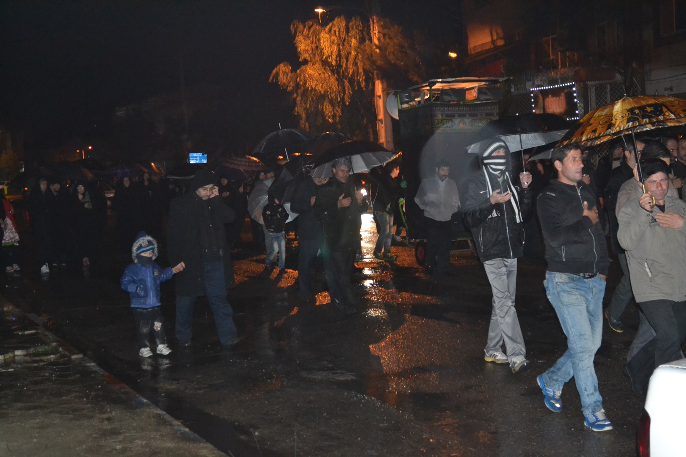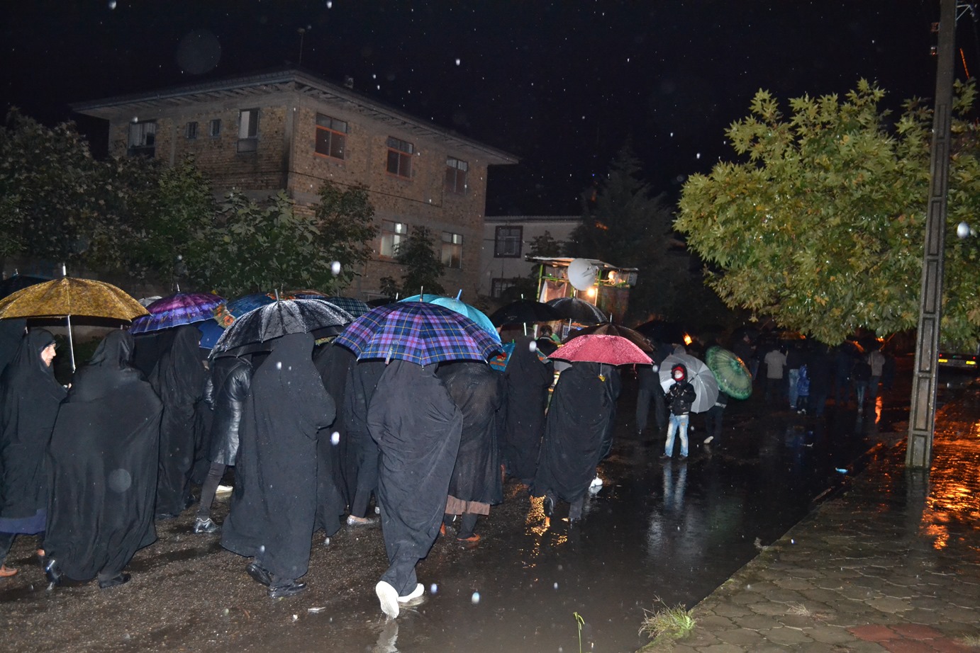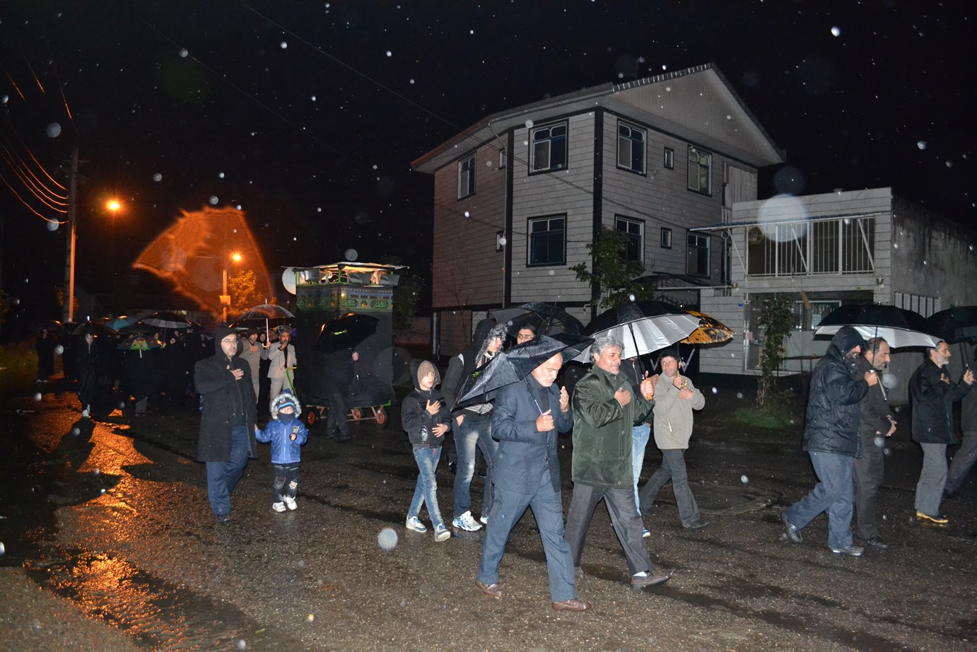 پس از پایان مراسم سخنرانی، مداحی و سینه زنی در مسجد پیامبر اعظم صلی الله علیه و آله شهرک امام خمینی شهرستان فومن، نمازگزاران و عزاداران حسینی علی رغم هوای سرد و بارانی شب شام غریبان محرم 1436 به صورت دسته جمعی به سمت مرکز شهر فومن حرکت کردند و با اهل بیت پیامبر اعظم علیهما السلام همدردی کردند.